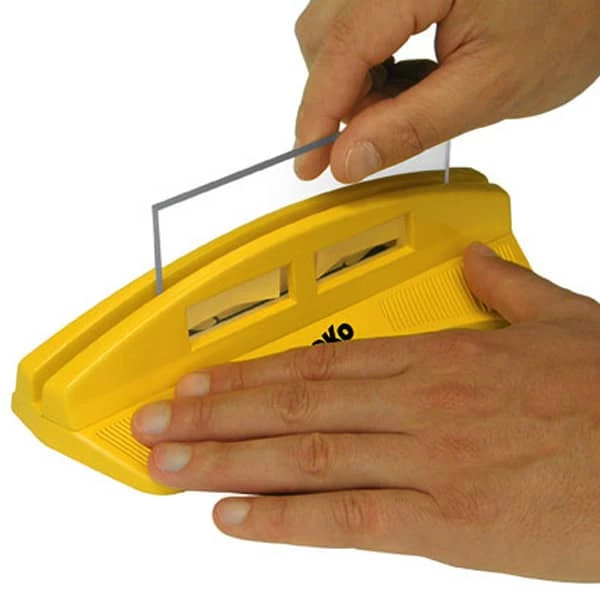 Professioneel gereedschap om de plastic lamellen van de scraper te slijpen en gelijk te maken.