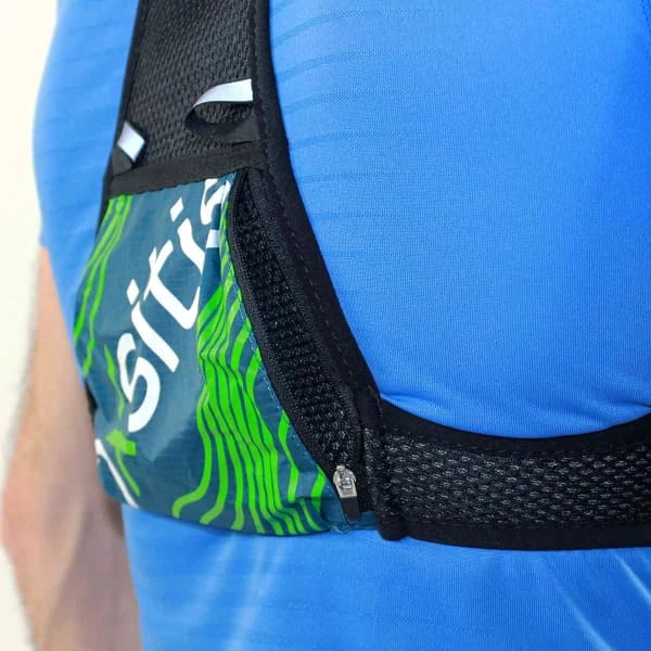 - Bretelle gauche avec poche pour accéder rapidement à ses barres énergétiques
